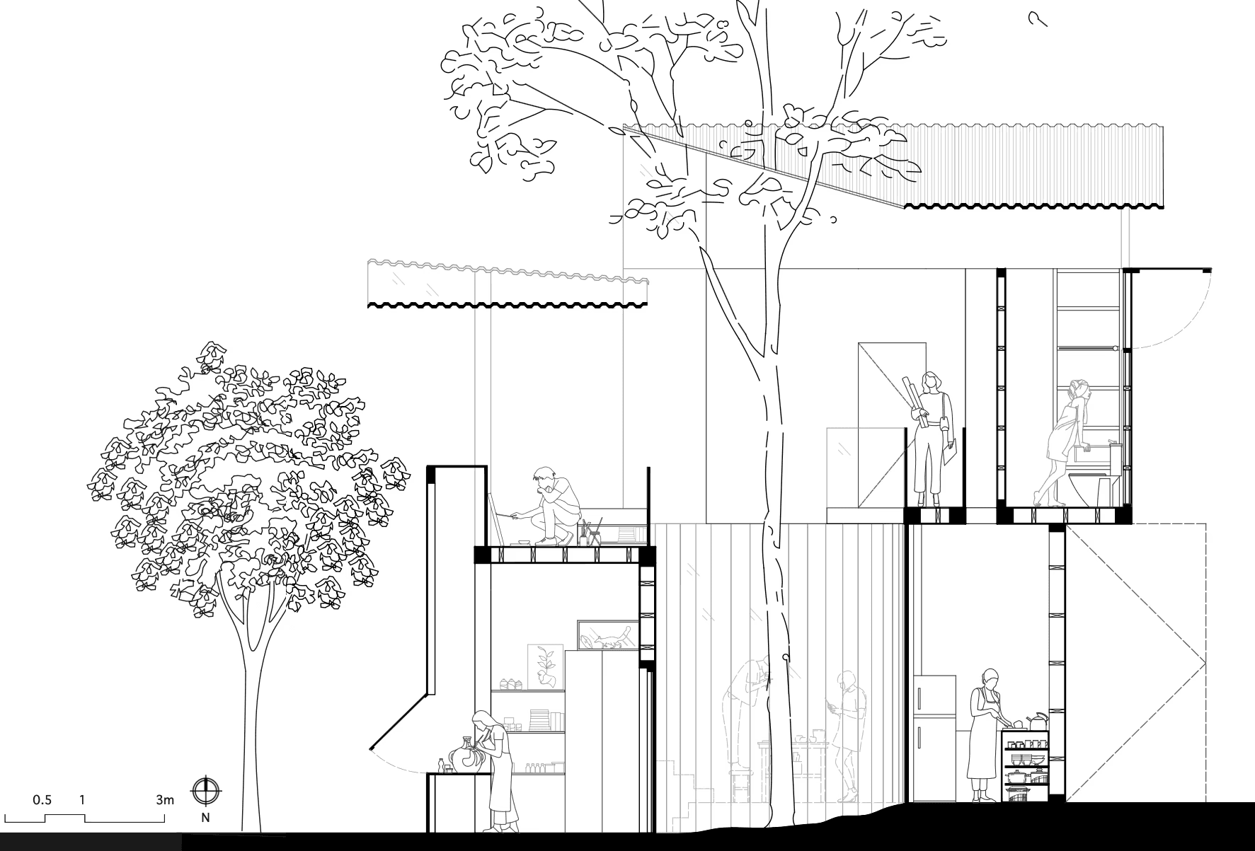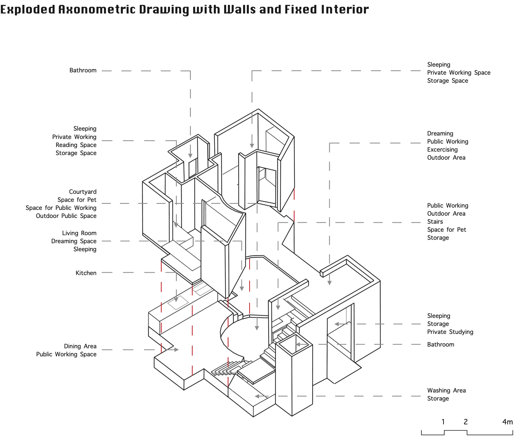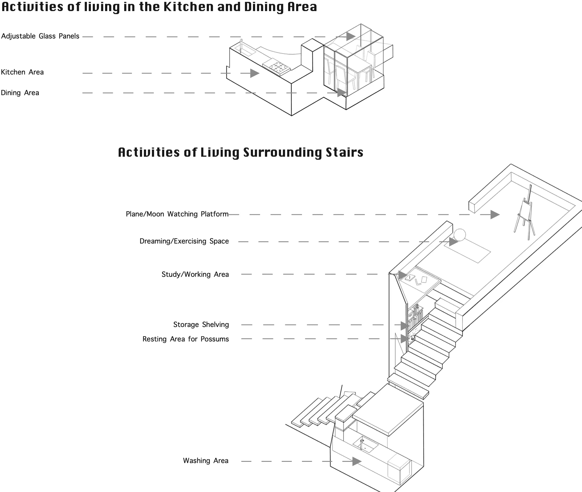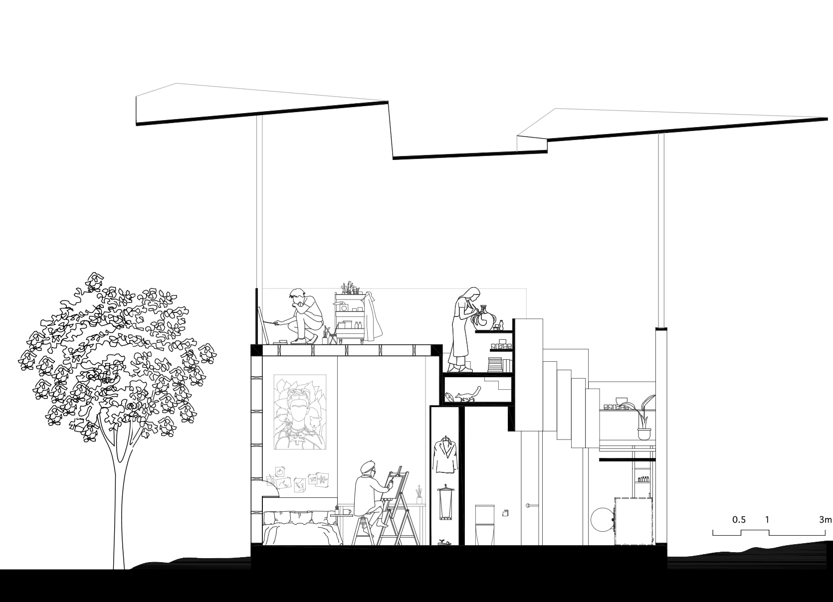 ”Innerworld” is an innovative exhibition-style dwelling situated at the periphery of Cadigal Greens, near the University of Sydney’s entrance. Designed to encapsulate the lives of 3 to 4 art and architecture students, it serves as a living canvas wherein their daily routines become a form of art—a concept rooted in the notion that art emanates from life itself.