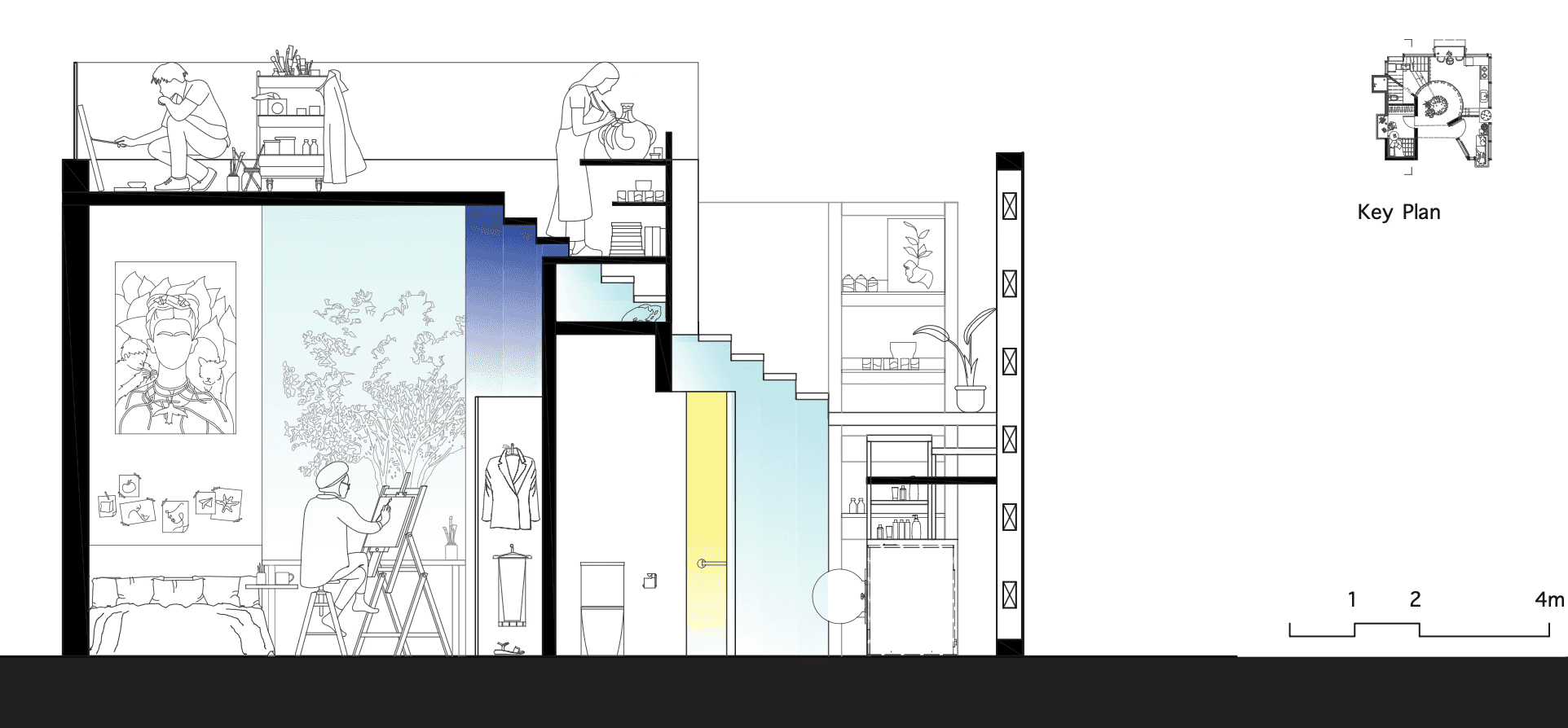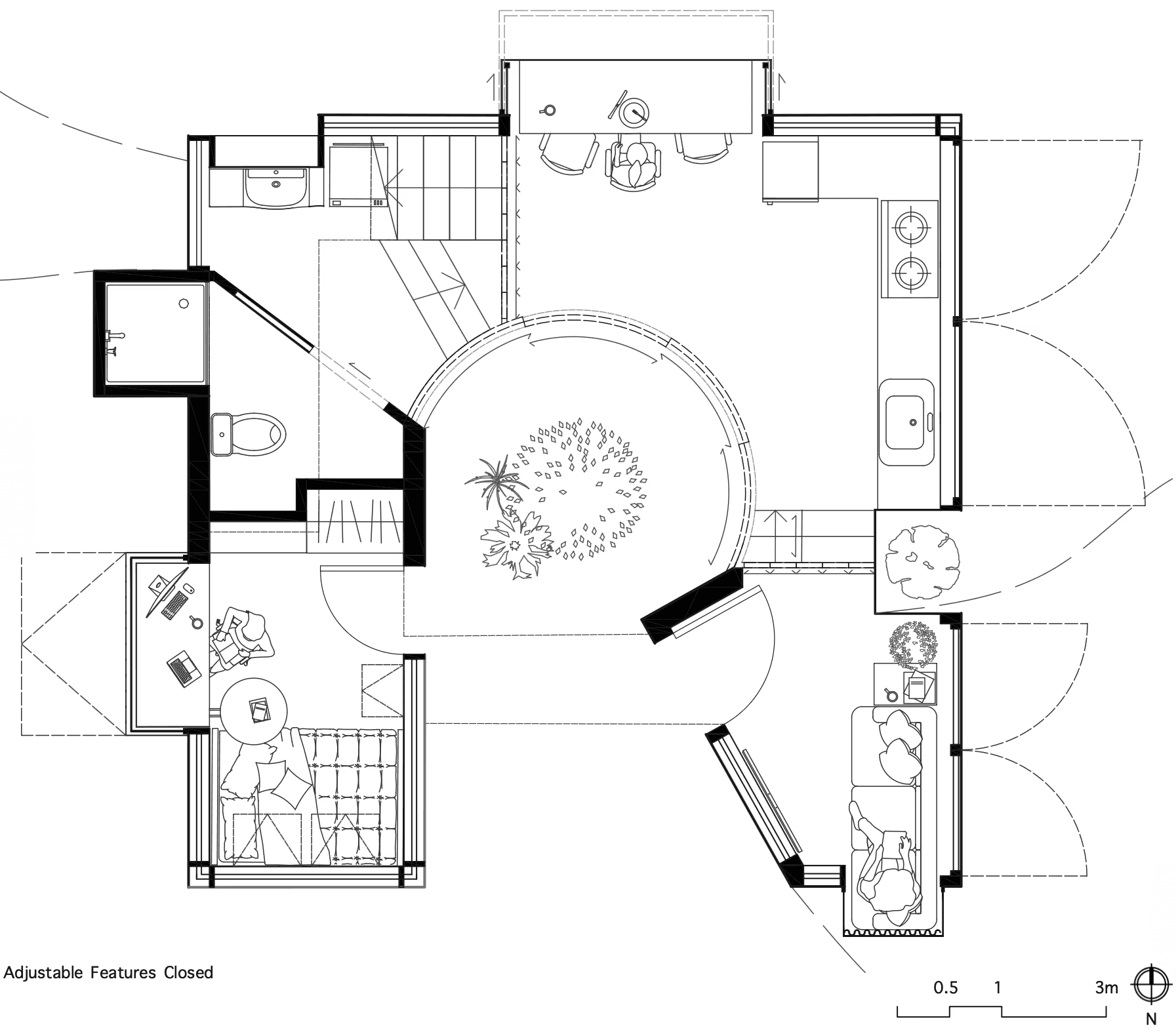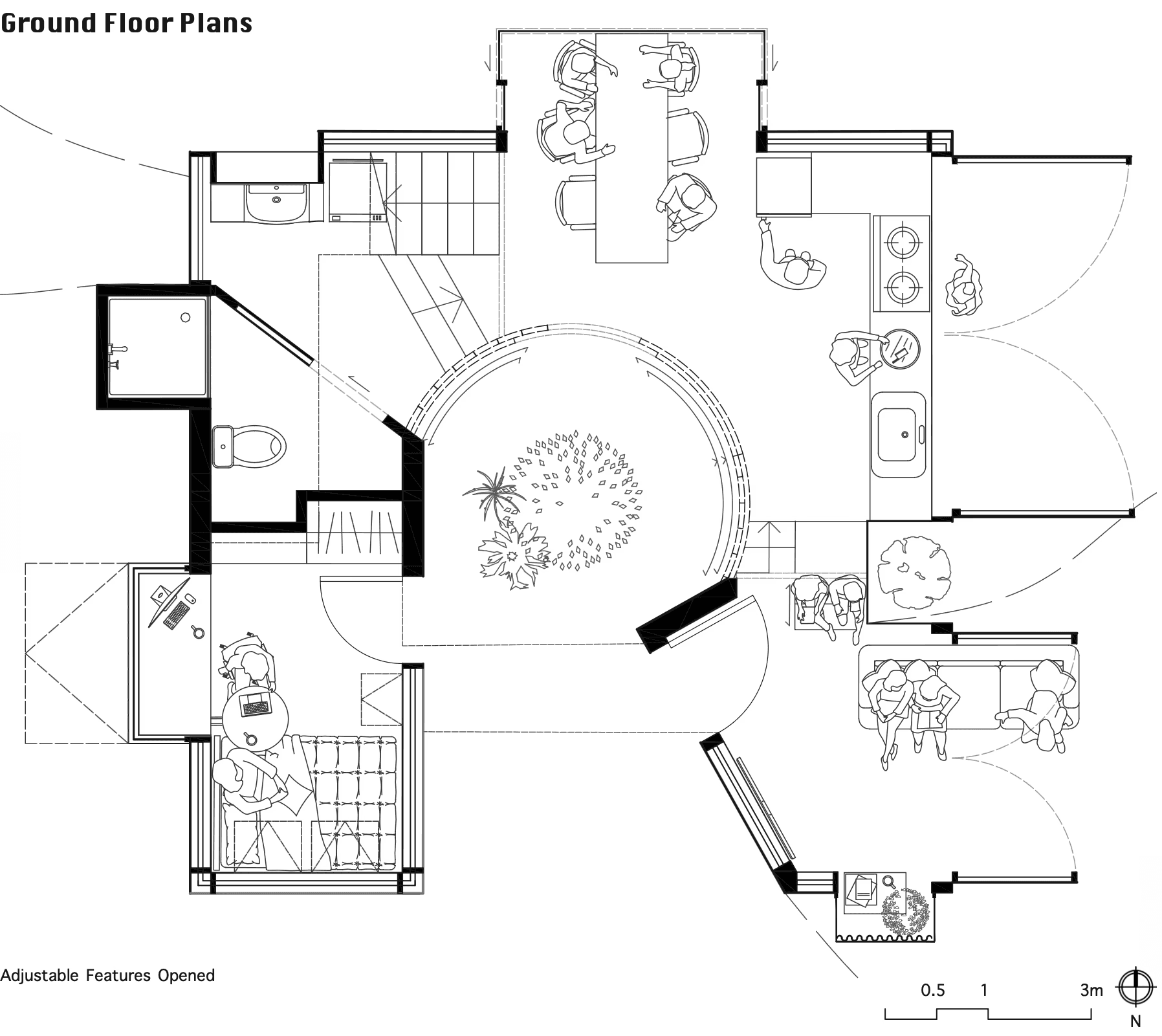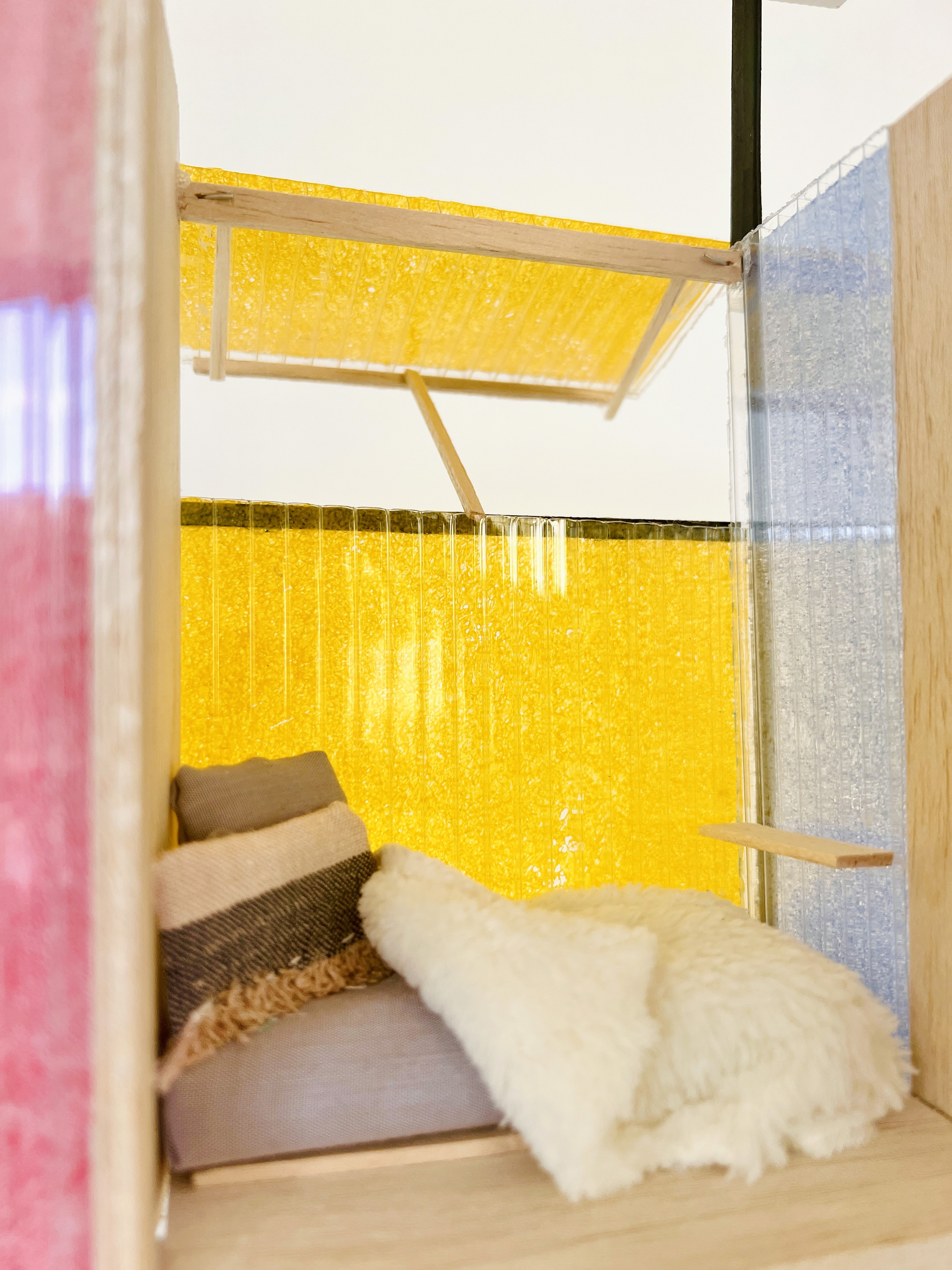 This architecture must adeptly transition from providing a tranquil haven for personal reflection to accommodating a multitude of guests. Flexibility is paramount to meet the diverse needs of its inhabitants. Recognising that innerworlds are inherently influenced by external forces, the act of painting on the polycarbonate walls can dynamically alter the space’s ambiance, underscoring the profound impact of social interaction on individuals.