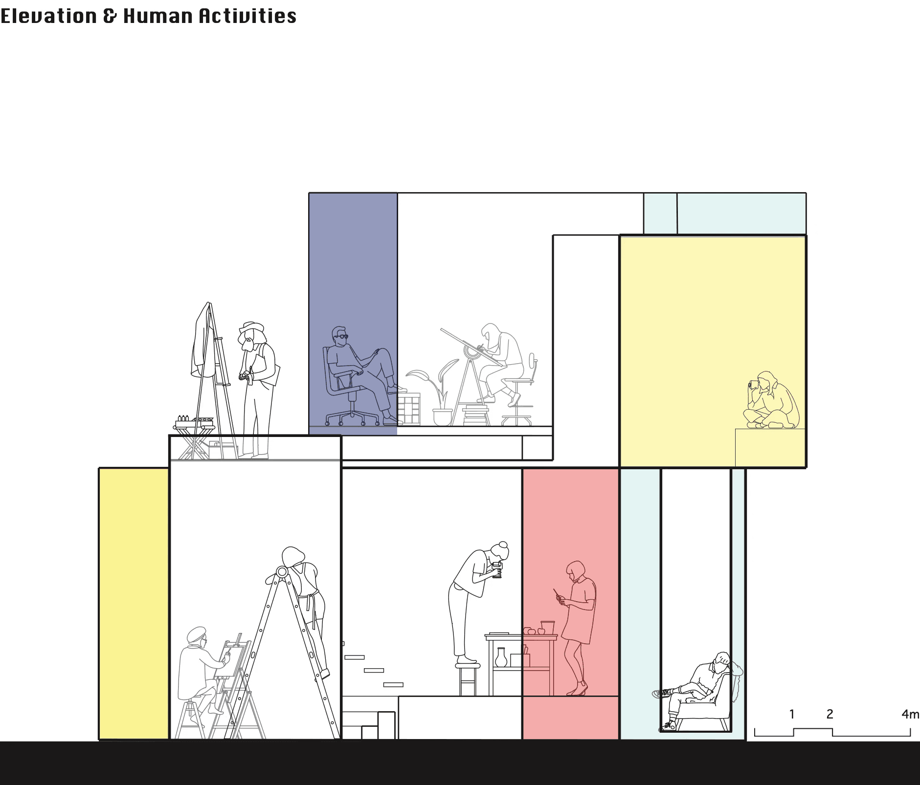 As an extension, experimentation on materials hones in on the intriguing interplay of colours, exploring how overlaying and blending can shift atmosphere within a space.